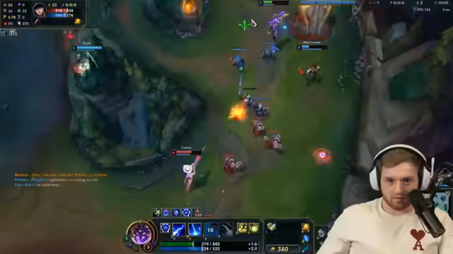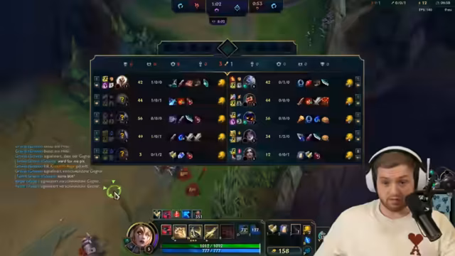 03:54:21Während des Spiels gibt es wiederholte Missverständnisse und koordinative Mängel im eigenen Team. Der Streamer bemängelt die mangelnde Kommunikation und Engagement von Chef, der längere Phasen schweigt, was als "lamer Scheiß" und Problem für den Teamerfolg bezeichnet wird. Das Spiel verläuft chaotisch mit ständigen, teils unkoordinierten Teamfights, in denen der Streamer selbst mehreren Todesfällen entgeht, aber das Team insgesamt im Nachteil ist. Gegnerische Champs wie Aurelion Sol werden als extrem stark im Late-Game kritisiert.