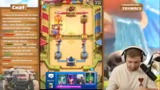 01:06:25Der Streamer startet die Trio Chaos Challenge und wählt ein Deck mit Hexewächter und Magier. Er stößt auf Gegner, die nur das Challenge-Badge farmen und nach Erreichen sofort aufgeben, was ihn frustriert. Während des Event-Gameplays nutzt er spezielle Karten wie die Cobalt-Party-Rakete und den Mortar, um Punkte zu sammeln und seine Chancen auf das Badge zu erhöhen. Sein Ziel ist es, die durchschnittliche Zeit von acht Stunden für den Erfolg zu unterbieten.