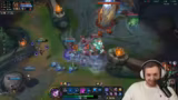 05:38:45Der Streamer wechselt den Champion zu LeBlanc und beginnt, SmartCast zu nutzen, was seine Steuerung verändert und für neue Herausforderungen sorgt. Es kommt zu einem weiteren Championwechsel zu Corki, wobei dieser auch für Witze über seine Lore und Spielweise herhalten muss. Der Fokus liegt auf dem Erlernen der neuen Champion-Mechaniken, wie SmartCast und Corkis Ultimate Fähigkeit mit der verstärkten (roten) Version.