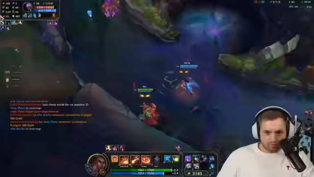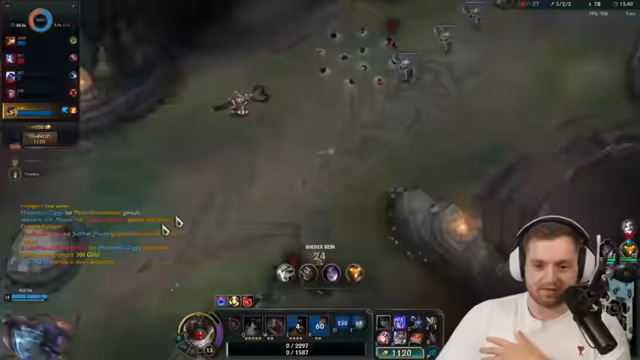 05:10:00Der Stream wird durch ein technisches Problem unterbrochen, das mit dem PayPal-Konto zusammenhängt und den League-Client zum Einfrieren bringt. Gleichzeitig wird eine witzige Anekdote über den falsch bestellten Parfüm-Vlog von Chef Strubel geteilt. Die letzten Erklärungen konzentrieren sich auf die Champion-Mechaniken von Draven, bei denen man die geworfenen Äxte fangen muss, um sofort wieder werfen zu können und maximalen Schaden zu erzielen, besonders im Start-Game von Swift-Plays.