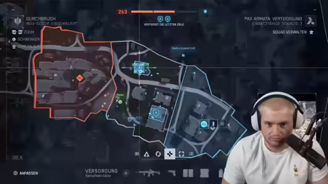 01:48:54Es wird auf den Discord-Beitritt von Sebo gewartet, um gemeinsam zu spielen. Die aktuelle Map wird als überaus gut für 'Breakdown' bezeichnet, wobei jedoch angemerkt wird, dass die Verteidigung bevorsteht. Es wird die Möglichkeit zum Snipen diskutiert, aber auch die Schwierigkeit, bestimmte Punkte wie A zu halten. Die Spieler äußern ihren Unmut über die zufällige Map-Auswahl. Es wird ein Muni-Pack benötigt, und der Panzer im gegnerischen Spawn wird als Problem identifiziert. Die Sicht von innen nach außen wird als schlecht empfunden, was das Zielen erschwert. Die Ammo-Situation wird als positiv bewertet, da sie ausreichend vorhanden ist. Es wird ein Headshot erzielt, und der Soundeffekt im Spiel wird gelobt. Die Spieler analysieren die gegnerische Strategie, insbesondere das Snipen vom Spawn aus. Es wird die Bedeutung von Teamwork und gegenseitiger Unterstützung hervorgehoben, insbesondere beim Wiederbeleben von Teammitgliedern. Die Spieler diskutieren verschiedene Taktiken und Strategien, um die Map zu erobern und die Gegner zu besiegen. Es wird die Bedeutung der richtigen Waffenwahl und des Levelns von Waffen hervorgehoben, um im Spiel erfolgreich zu sein. Die Spieler experimentieren mit verschiedenen Waffen und Aufsätzen, um ihre Leistung zu verbessern. Es wird auch die Frustration über häufige Tode und die Schwierigkeit, in bestimmten Situationen zu überleben, thematisiert. Trotz der Herausforderungen bleibt der Spaß am Spiel und die Begeisterung für taktische Aktionen erhalten.
