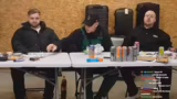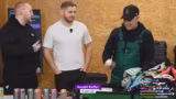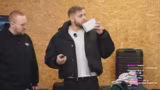 01:13:47Nachdem die Streamer den Inhalt des Hoverboard-Koffers vollständig ausgepackt haben, wird eine Essenspause angekündigt. Währenddessen wirbt Monte für die neue Gönnergy Sorte, die am 26. Februar erscheinen wird, und präsentiert das neue Design der Dosen. Die Streamer genießen ihr Essen und diskutieren weiterhin über die bereits gefundenen Koffer und den Geruch der Unterhosen.