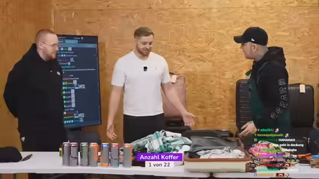 03:28:23Die Enttäuschung über die Inhalte der Koffer ist bereits im ersten Teil des Streams deutlich spürbar. Die Streamer debattieren über die fragwürdige Qualität der gefundenen Gegenstände. Eine wichtige Ankündigung betrifft eine bevorstehende Partnerschaft: Max ist mit der Marke Gunnergy verpartnert, daher wird er den Stream kurz verlassen, wenn Monte Inhalte des Partners präsentiert, um Fairness zu wahren. Neuere Gunnergy-Sorten und ein neues Design werden für den 26.02. angekündigt, welche es auch in einer Zero-Variante geben wird. Die Schätzungen für den Wert der Koffer liegen bei bis zu 260 Euro, was als hoch für die gebotene Qualität empfunden wird.