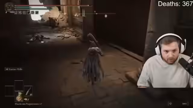 06:15:50Nachdem der Kampf gegen den Fire Giant abgebrochen wurde, wendet sich der Streamer der Erkundung eines Dungeons zu. Er kämpft gegen verschiedene Gegner, löst ein Rätsel aus Versehen, indem er einen Fahrstuhl hochschickt, und wird dabei von unbesiegbaren Schatten-Gegnern angegriffen. Er verliert dabei wichtige Gegenstände wie Tränke und findet es frustrierend, dass er keine Heilungsmittel mehr hat und weiter erkunden muss.