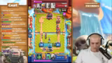 03:18:53In einem Spielverlauf wird ein taktischer Fehler diskutiert, bei dem ein Kartenzug gegen Friedhof-Weine zu spät erfolgte, was zum Verlust führte. Anschließend folgt ein geplanter Golem-Angriff, bei dem der Gegner keine Möglichkeit zur effektiven Verteidigung hat, da er weder eine Schweineleiter noch eine Evo-Valkyrie hat. Der Streamer plant defensiv mit Heilerin und Barbaren, während der Gegner einen Henker setzt, was eine günstige Situation für den eigenen Push darstellt.