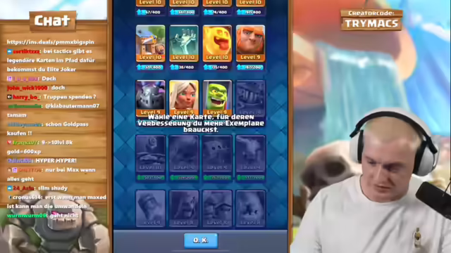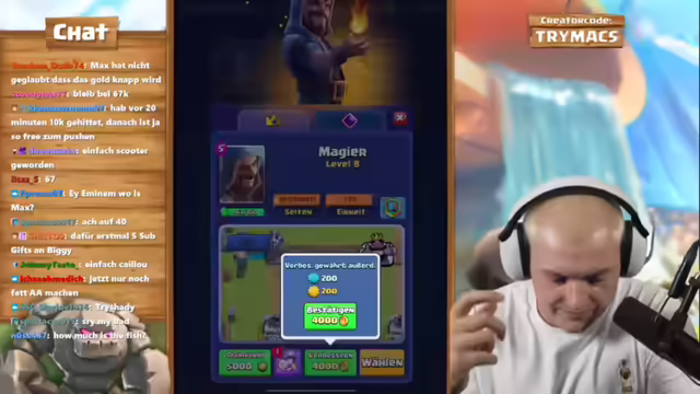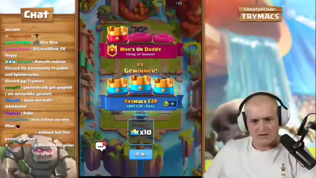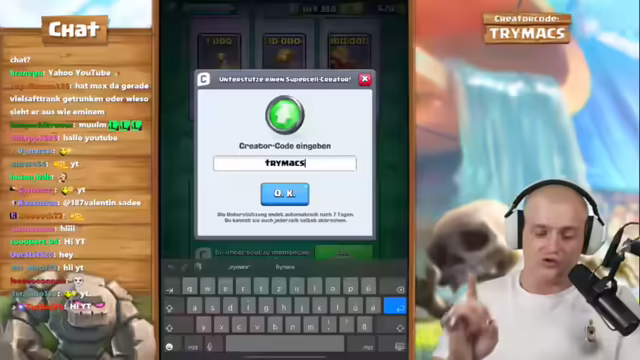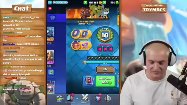 04:13:50Es wird angekündigt, dass es das erste Coaching von Chef Strobel nach 10 Jahren Clash Royale geben wird. Es wird betont, dass Chef Strobel kein ultra krasser Spieler, aber ein katastrophaler Coach ist. Er hat jedoch fünfmal hintereinander zwölf Siege mit dem Golem-Kobold-Maschine-Deck gemacht und es perfektioniert. Es wird erwähnt, dass Chef Strobel auf dem Free-to-Play-Account des Streamers davonzieht, weil er jede 100 Gems in zwölf Siege umwandelt. Das Ziel ist, mit einem drei Monate alten Free-to-Play-Plus-Pass-Account den ultimativen Champion zu erreichen und dafür die 10.000 Trophäen zu knacken. Es wird auf den Credit-Code hingewiesen, der kostenlosen Support ermöglicht. Im September gab es über 90.000 Unterstützer. Es werden Ziele für das Coaching festgelegt: 8 Siege bringen 10 Subgifts, 12 Siege bringen 50 Subgifts. Es wird jedoch davon ausgegangen, dass nur 3 Siege erreicht werden. Der Streamer spielt so gut er kann, erlaubt aber Chef Strobel, eigene Plays zu machen, wenn er sie für besser hält. Es wird betont, dass es Hard Counter geben wird und dass es wichtig ist, immer Evos zu cykeln, insbesondere den Babydrachen.
