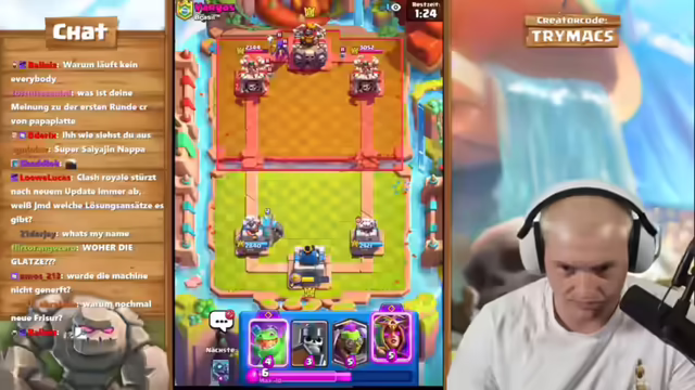 Trymacs präsentiert sein neues Aussehen und taucht in Clash Royale ein, mit Fokus auf neue Updates und Taktiken. Er spielt Merge Tactics, analysiert OP-Kombos und dankt der Community für über 90.000 Unterstützer im September. Es wird überlegt, die 10.000 Trophäen zu erreichen und Free-to-Play zu pushen. Der Streamer testet ein Golem Heiler Deck und gibt Coaching.