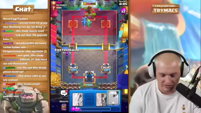 05:19:00Es wird festgestellt, dass zehn Siege in der Grand Challenge eine starke Leistung sind. Es wird empfohlen, die Grand Challenge nicht zu spielen, es sei denn, man ist ein E-Sportler mit hohen Preisgeldern in Clash Royale. Stattdessen wird geraten, Blitztruhen zu kaufen, um Karten zu erhalten. Die Grand Challenge sei zu anstrengend und von E-Sportlern dominiert. Trotzdem wird die gute Leistung des Coachs gelobt. Es folgt eine kurze Pause. Der Streamer geht mit Big Spin erneut in die Grand Challenge, nachdem er zuvor mit einem neuen Deck drei und vier Siege erzielt hat. Nach dem Coaching durch Chef Strobel wurden zehn Siege erreicht. Es wird festgestellt, dass Sam mit dem Deck zwölf Siege und Chef Strobel zehn Siege erzielt hat. Der Streamer möchte nun selbst mit dem Deck erfolgreich sein. Es wird um Kanalabonnements gebeten, um Belohnungen und Gold zu erhalten, um Level 42 zu erreichen und Truppen auf Level 14 zu bringen, um 10.000 Trophäen freizuschalten. Der Credit-Code wird erwähnt und die große Unterstützung der Community hervorgehoben. Der Streamer geht pinkeln und bittet den Chat, nicht zu sabbern. Die Gegner werden analysiert und es wird ein Unterschied gemacht, ob man auf Platz 3.000 oder gegen einen Mid-Leader-Atzen trifft. Es wird die Vorfreude auf die Balance Changes am nächsten Montag ausgedrückt und die Evo-Skami als potenziell stark hervorgehoben.
