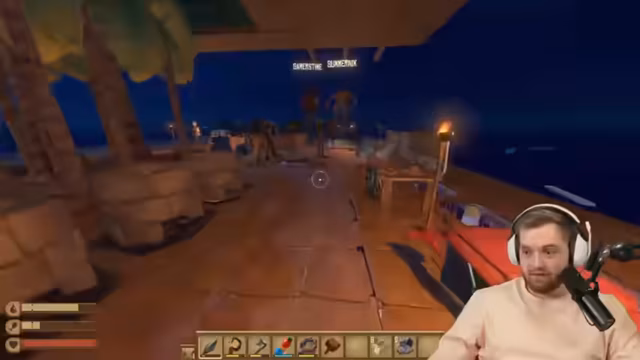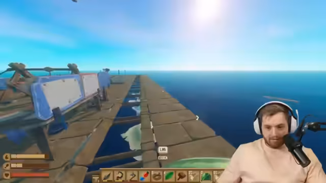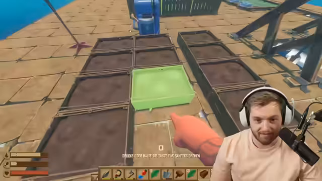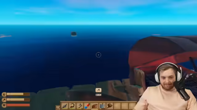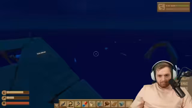 00:39:43Nachdem sich die anderen Streamer im Raft-Spiel eingefunden haben, startet das gemeinsame Gameplay. Die Gruppe treibt mit ihrem Floß über das Meer und sammelt Ressourcen wie Holz, Kunststoff und Schrott. Der Fokus liegt darauf, die notwendigen Materialien für das Bauen von drei Antennen zu beschaffen, um die Story-Inseln freizuschalten. Dabei gibt es Diskussionen über die Spielmechaniken, den nächsten Schritt und die Rolle jedes Teammitglieds.