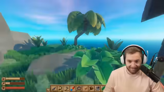 02:08:26Die Gruppe erreicht eine große Insel, auf der ein Shop mit diversen Ressourcen wie Planken und Schrott zu finden ist. Einer der Streamer beginnt mit dem Bau einer Vogelscheuche, während die anderen auf der Suche nach Kugelfischen mit Pfeil und Bogen sind, da diese nur auf dieser Insel gefunden werden können. Es wird auch das Restaurant Castaway als Filmreferenz genannt.