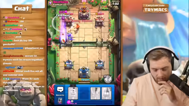 05:40:10Hier wird auf die Risiken bei der Verwendung von bestimmten Karten eingegangen, insbesondere der Valkyrie. Es wird diskutiert, wann man sie zünden sollte, um nicht One-Shotted zu werden, und wie man defensiv spielen muss, wenn der Gegner Giant-Skill spielt. Der Streamer betont die Notwendigkeit, defensiv mit Skate und Ritter zu spielen und die Gefahr von Ballons zu erkennen.