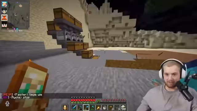 05:16:38Die Streamer diskutieren über benötigte Ressourcen wie Diamanten, Redstone und Lapis Lazuli für zukünftige Projekte. Ein Spieler namens Nick wird angewiesen, gesammeltes Holz zu Planken und diese zu Kisten zu verarbeiten, um Inventarplatz zu schaffen. Es wird festgestellt, dass Nick sein Inventar ineffizient organisiert hat, mit unnötigen Gegenständen und doppelten Werkzeugen. Die Notwendigkeit, eine große Anzahl von Kisten zu craften, wird betont, um die Lagerkapazität zu erhöhen. Die Planung für eine Farm beginnt, wobei die genaue Platzierung und Größe der Struktur festgelegt wird. Es wird entschieden, eine längliche Farm zu bauen, die später in Stockwerken erweitert werden soll. Die Diskussion dreht sich auch um die Beschaffung von Hoppern, die für die Automatisierung der Farm unerlässlich sind und eine große Menge an Eisen und Holz erfordern, was die hohen Kosten dieses Projekts unterstreicht.