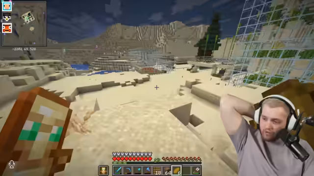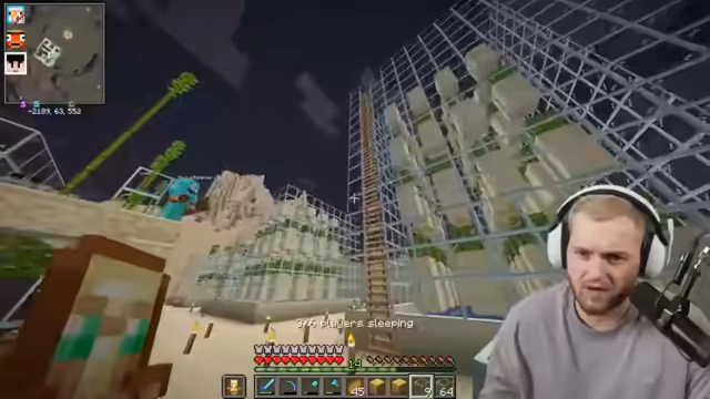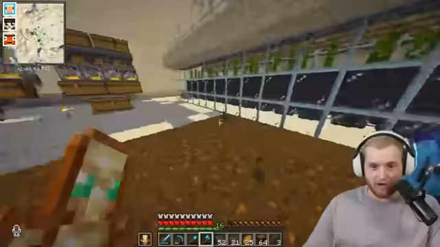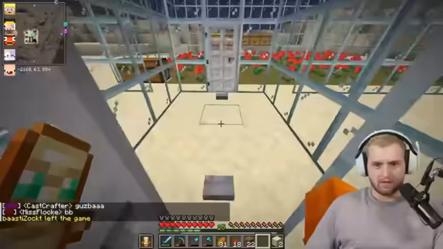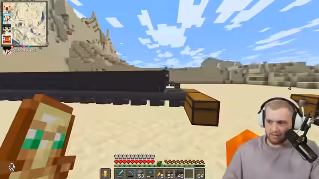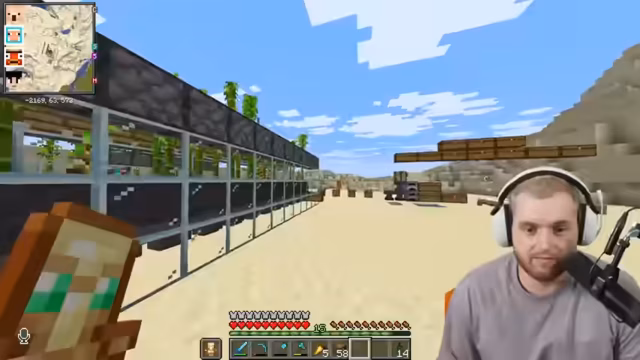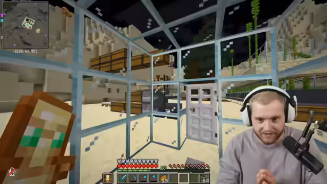08:05:42Der Streamer berichtet von seinem Erfolg bei der Bienensuche und plant den Bau einer großen Bienenfarm. Währenddessen tauscht er sich mit anderen Spielern über den Fortschritt ihrer Kaktusfarmen aus. Es stellt sich heraus, dass ein Mangel an Glas besteht, da der Sand für die Glasproduktion aufgebraucht ist. Der Streamer muss Sand farmen, um weiterhin Glas für seine Bauprojekte zu haben. Er entdeckt auch einen Fehler in der Kaktusfarm eines anderen Spielers, bei dem ein Zaun falsch platziert ist, was die Effizienz der Farm beeinträchtigt.