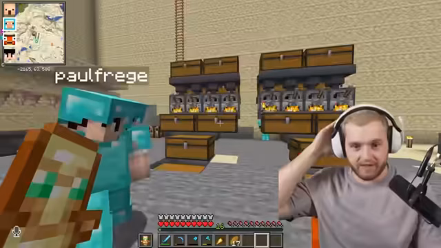 06:41:25Paul sorgt für Aufregung, indem er versehentlich Creeper spawnen lässt und Lava in der Nähe der Farmen platziert, was zu Zerstörung führt. Seine Handlungen werden als 'gestört' und 'absurd' bezeichnet, da er Experimente direkt neben wichtigen Strukturen durchführt. Paul erklärt, dass er neu in Minecraft ist und neugierig war, was passiert, wenn er Lava und Wasser verwendet. Das Team reagiert mit Frustration, da seine 'Experimente' die mühsam aufgebauten Farmen gefährden. Ein Vergleich mit dem Abfeuern einer AK-47 im eigenen Haus wird gezogen, um die Absurdität von Pauls Handlungen zu verdeutlichen. Trotz der wiederholten Fehler und der daraus resultierenden Schäden wird Pauls Rolle im Team nicht in Frage gestellt, sondern seine Lernkurve und seine sportlichen Fähigkeiten außerhalb von Minecraft werden als Ausgleich hervorgehoben. Es wird beschlossen, dass Paul seine Experimente in Zukunft außerhalb der Basis durchführen soll.