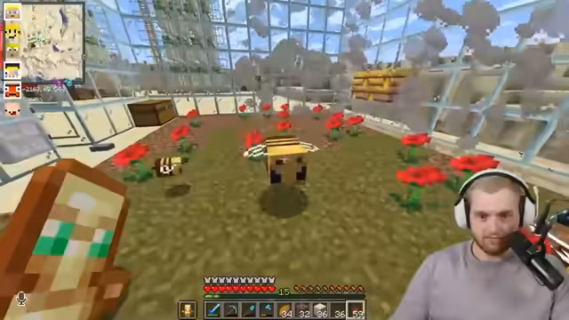 08:00:17Nachdem der Regen aufgehört hat, gelingt es dem Streamer, zwei Bienen in einen Bienenstock zu locken. Er vermehrt sie erfolgreich mit Blumen, die er aus der Nähe sammelt. Eine Babybiene entsteht, die jedoch keinen Platz im vollen Bienenstock findet. Der Streamer versucht, einen leeren Bienenstock zu platzieren, damit die Babybiene ein Zuhause findet, was jedoch misslingt. Die Babybiene wird letztendlich verloren, aber der Streamer hat nun genügend Bienen, um seine Farm zu starten. Er kehrt zur Basis zurück, um mit dem Bau einer riesigen Glasbox für die Bienenfarm zu beginnen.