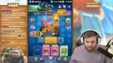 03:11:58Der Streamer spielt mehrere Runden mit dem neuen Deck und analysiert das Gameplay. Er erklärt die Stärken und Schwächen des Decks und wie es gegen bestimmte gegnerische Taktiken funktioniert. Er zeigt, wie die Runenriesen benutzt werden können, um benachbarte Einheiten zu buffen und dadurch erheblichen Schaden zu verursachen. Er erwähnt auch, dass die Karten im nächsten Update angepasst werden sollen.