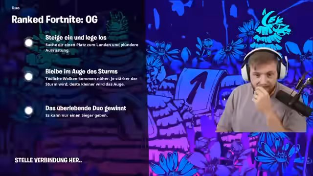 02:43:08Der Streamer spielt Fortnite OG und befindet sich auf Platz 39 global. Er beschäftigt sich intensiv mit dem Spielverhalten, strategischen Entscheidungen und kommentiert seine Aktionen während des Spielens. Er erwähnt technische Unterbrechungen wie den Trockner und seine versuchte Multitasking-Fähigkeit während des Streamings.