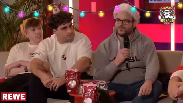 00:41:17Während der Pausen zwischen den Spielen wird auf die Möglichkeit für Zuschauer hingewiesen, aktiv am Event teilzunehmen. Über eine Auslosung im offiziellen Discord-Server haben Zuschauer die Chance, gegen den Streamer Trymacs zu spielen. Für erfolgreiche Teilnahme und auch für die Teilnahme selbst werden REWE-Gutscheine im Wert von bis zu 250 Euro verlost, was für hohe motivierende Beteiligung sorgt und die Interaktion mit der Community fördert.