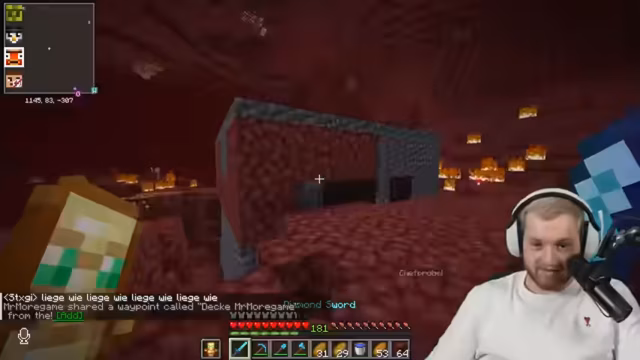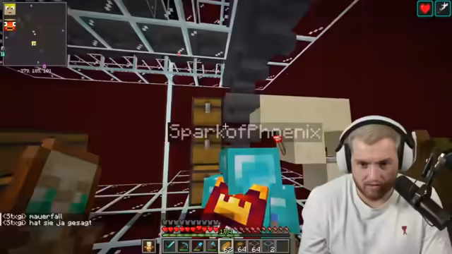 02:32:49Die Teammitglieder kämpfen weiterhin mit den Herausforderungen im Nether, insbesondere mit dem Bau der Blaze-Farm. Es wird versucht, einen der beiden Blaze-Spawner zuzubauen, um die Spawnrate zu kontrollieren, was jedoch zu Diskussionen führt, da die Blazes trotzdem spawnen. Die hohe Anzahl der Blazes und die schwierigen Kampfbedingungen machen den Bau der Farm extrem mühsam. Paul verliert erneut die Orientierung im Nether und hat Schwierigkeiten, den Weg zurück zur Basis zu finden, da die Fackeln verschwunden sind. Die Kommunikation über die genauen Koordinaten und den Weg ist weiterhin problematisch. Max und Chef Strobl geraten in einen hitzigen Streit über die Effektivität der Baumaßnahmen und die Strategie im Kampf gegen die Blazes. Chef Strobl versucht, die Funktionsweise der Farm zu erklären und betont, dass die Blazes im Raum bleiben, auch wenn sie spawnen. Die Teammitglieder sind erschöpft und frustriert, aber die Notwendigkeit der Blaze Rods für den Kupfergolem treibt sie an. Max stirbt schließlich im Kampf gegen die Blazes, was die Schwierigkeit der Situation unterstreicht und das Team weiter unter Druck setzt. Die Frage nach der Effektivität von Brot als Kampfessen wird aufgeworfen.