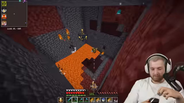 02:27:00Die Teammitglieder kämpfen im Nether um den Bau der Blaze-Farm, wobei die hohe Spawnrate der Blazes und die schwierigen Bedingungen eine große Herausforderung darstellen. Es wird diskutiert, ob das Einbauen der Spawner das Spawnen von Blazes verhindert, wobei Chef Strobl betont, dass sie trotzdem spawnen, aber im Raum bleiben und nicht entweichen können. Die Notwendigkeit eines Daches über der Farm, um die Blazes am Wegfliegen zu hindern, wird erkannt. Es stellt sich heraus, dass es zwei Blaze-Spawner nebeneinander gibt, was die Situation zusätzlich erschwert. Die Teammitglieder sind frustriert über die Schwierigkeiten und die scheinbare Ineffizienz ihrer Bemühungen. Paul verliert den Überblick über den Weg zurück zur Basis und die Fackeln, die als Orientierung dienen sollten, sind verschwunden. Die Kommunikation über die genaue Position und den Weg im Nether gestaltet sich schwierig. Die Diskussion über die Notwendigkeit von Waxed Weathered Copper Bulbs oder nur Waxed Block of Copper für den Golem wird fortgesetzt, wobei die Lampen als am dringendsten benötigt identifiziert werden. Die Teamdynamik ist von Anspannung und Frustration geprägt, aber der Wille, die Blaze-Farm zu bauen, bleibt bestehen.