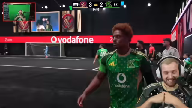 05:01:28Die Kings League-Partie gestaltet sich äußerst spannend, wobei das Team mehr Tore aus dem Spiel heraus erzielt, was als gutes Zeichen gewertet wird. Trotzdem gibt es technische Probleme mit Discord und Stream-Verzögerungen, die die Kommunikation erschweren. Ein Spieler ist im AFK-Channel, während andere versuchen, ihn zu erreichen. Die Delay-Probleme beeinflussen die Jubelreaktionen und die allgemeine Stimmung. Die Partie ist von engen Spielzügen und strittigen Entscheidungen geprägt, darunter ein Penalty, der das Ergebnis beeinflusst. Die Spieler sind aufgeregt und konzentriert, da viel auf dem Spiel steht. Es wird auch über die Nutzung von Secret Cards und die Auswirkungen auf das Spielgeschehen diskutiert.