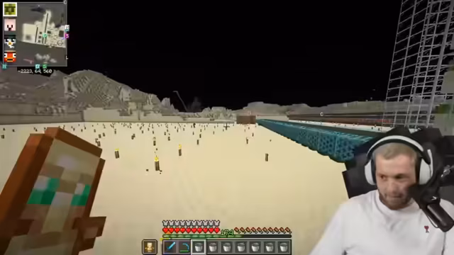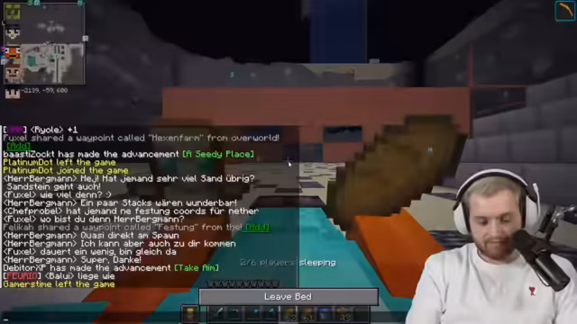 08:51:24Es wird festgestellt, dass null Sugarcane in der Basis vorhanden ist, obwohl früher viel angebaut wurde. Es wird vermutet, dass ein Teil für Raketen verwendet wurde, als Reapers und der Spieler weit weggeflogen sind. Der Bedarf an Terracotta wird angesprochen. Es wird ein Haus in der Wüste, 50 Blöcke neben der Kupferfarm, entdeckt, das als Katastrophe angesehen wird, da Zombies spawnen und die Farm zerstören könnten. Zabex und Schradin wohnen dort, und der Eiffelturm und Zabex' Haus sind ebenfalls in der Nähe. Es wird erwähnt, dass die Spieler Mitte 40 sind und nur drei Stunden am Tag spielen, was als unproblematisch angesehen wird. Adi hat sich mit Kupferbulbs hochgebaut, die dringend benötigt werden. Es wird besprochen, dass nachts AFK stehen ein Problem ist, tagsüber jedoch nicht. Es wird eine peinliche Situation beschrieben, in der jemand entmutet wurde, während er über etwas Peinliches sprach. Es wird über Skins diskutiert, wobei ein Melonen-Golem-Skin als fünf Jahre alt und der Spieler als Fisch, ein anderer als Vogel und Niki als Schaf beschrieben werden, die alle Tiere sind, aber der Melonen-Golem nicht im Golem-Team ist. Spark hat ein Referat über die Wichtigkeit von Gruppenprojekten gehalten. Die Schwierigkeit, Materialien für die LOL-Map zu beschaffen, wird unterschätzt. Es wird über einen Minecraft-Server gesprochen, der League of Legends nachprogrammiert hat, und die Fähigkeit von Joe, dies in einem Monat zu schaffen, wenn er ein Budget bekommt. Das Alter von Josef (Jocraft) wird auf Ende 20 geschätzt. Es wird festgestellt, dass jemand eine Geode abgebaut und mit Dirt und Netherrack aufgefüllt hat, was als Sabotage angesehen wird. Die Wichtigkeit, das Loch sauber zu halten, wird betont. Die Kisten für das Sortiersystem müssen neu gebaut werden, da Spark sie abgebaut hat. Es wird besprochen, dass man sich beim AFK stehen aus- und wieder einloggen sollte, um sicher zu sein. Die Pläne für den Bau eines Glasblocks mit einem Piston werden besprochen, bevor der Stream endet.