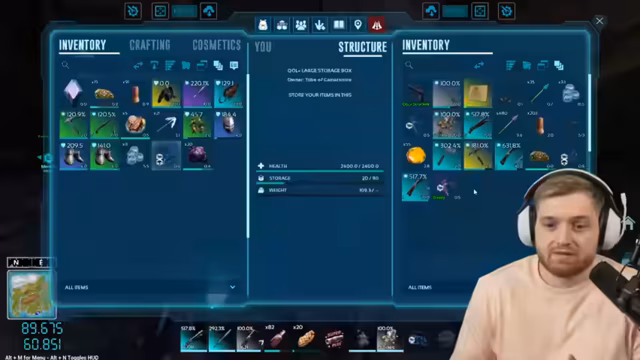 02:42:41Der Spieler berichtet über das aktuelle Inventar, das zwar fast komplett mit den benötigten Komponenten gefüllt ist, jedoch noch Lücken bei den Agentavis‑Kralle‑Stücken und bei der exakten Stückzahl von Krokodilhaut aufweisen soll. Es wird darüber diskutiert, wo diese Items gefunden werden können – etwa aus Loot‑Drops, Crates oder spezifischen Höhlen – und es wird angemerkt, dass das Auffinden von Gegenständen ein Phänomen ist, bei dem das Gesuchte oft nur dann erscheint, wenn man nicht gezielt danach sucht. Zusätzlich werden Fragen zum Transport und zur Lagertemperatur bestimmter Items adressiert.