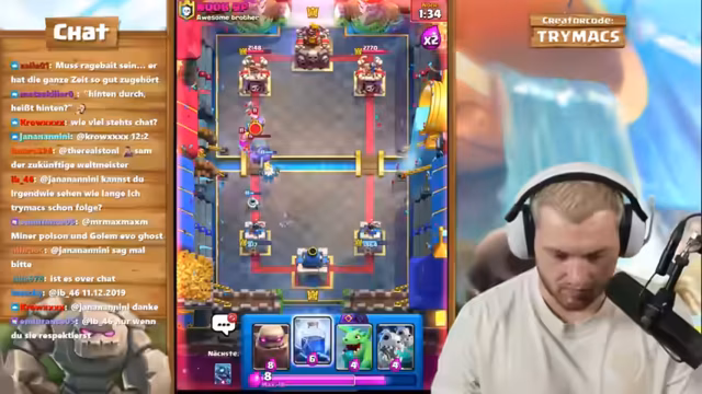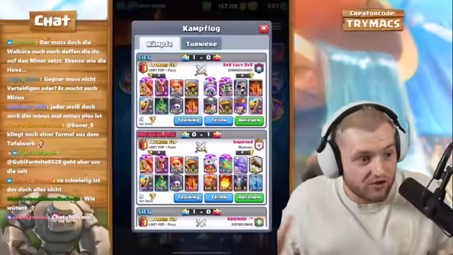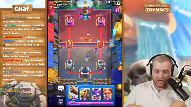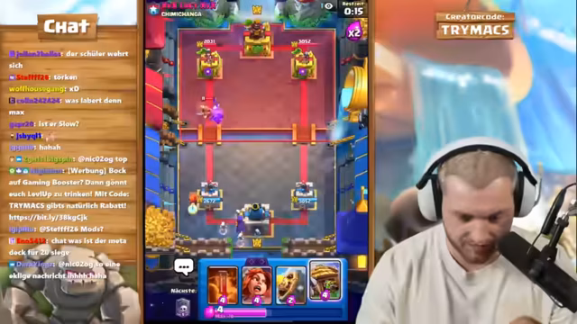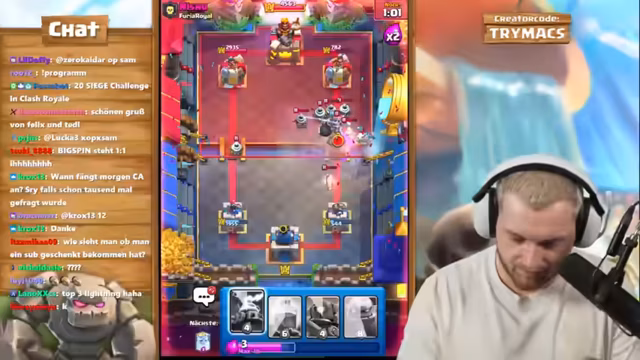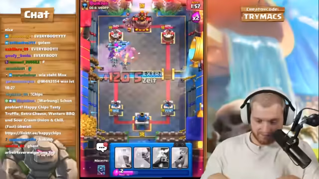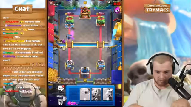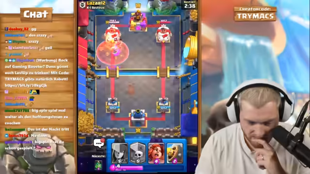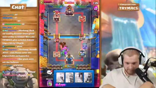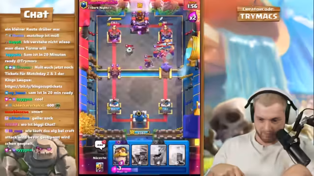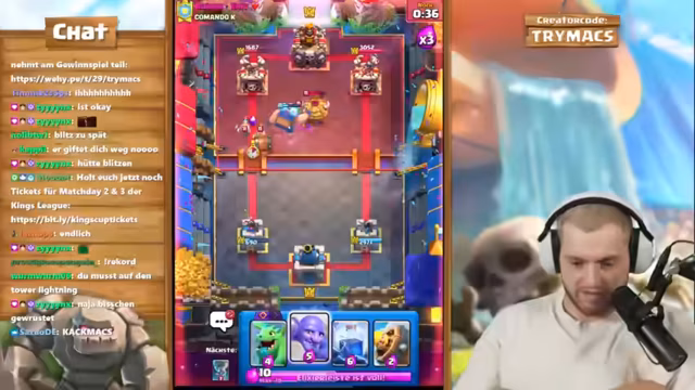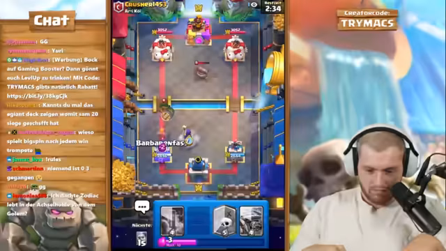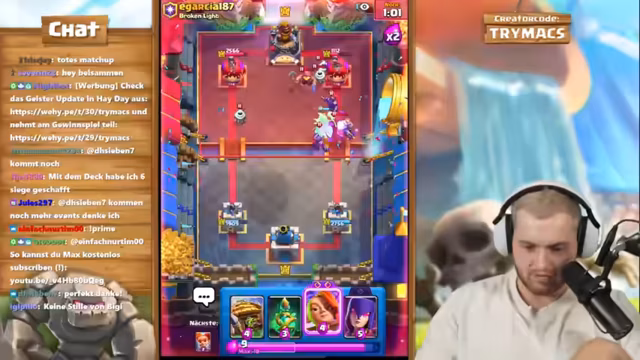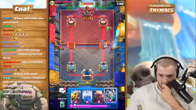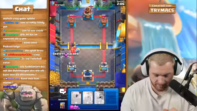 06:16:49Der Streamer startet mit einem 3:0-Sieg in eine neue Runde, was einen vielversprechenden Beginn darstellt. Er teilt seine Freude über Muffins, die ihm gebracht wurden. Im weiteren Verlauf des Spiels werden Strategien gegen Miner-Decks besprochen, insbesondere die Taktik, Mauerbrecher durchlaufen zu lassen, anstatt sie zu verteidigen, um Elixier zu sparen und den eigenen Push voranzutreiben. Diese Taktik erweist sich als äußerst effektiv, da der Streamer, der zuvor 40 von 40 Mal gegen dieses Deck verloren hatte, nun gewinnt. Er betont die Wichtigkeit, den maximalen Schaden des Gegners zu kennen und entsprechend zu agieren, um eine erfolgreiche Gegenoffensive zu starten. Die Serie von Siegen führt zu einer weiteren Goldkiste, was die Stimmung weiter anheizt.
