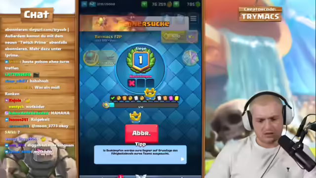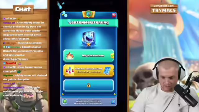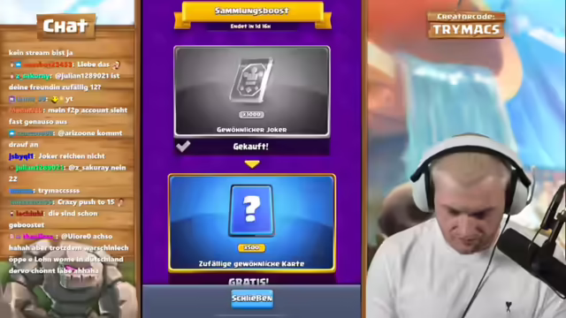 02:51:24Es wird kurz über eine Anfrage zur Zusammenarbeit gesprochen, die jedoch abgelehnt wird. Im Anschluss startet der Streamer eine Stream-Together-Session. Nach einem kurzen Rückblick auf ein vorheriges Finish in einem anderen Spiel, wird der Fokus auf Clash Royale gelegt. Es beginnt eine neue Season auf einem Free2Play Plus Pass Account, was ein fettes Opening verspricht. Der Streamer freut sich besonders über ein Buch der Common Cards und ein Buch der Rares, womit er seine Hütte und seinen Evo-Ritter auf Level 14 bringen kann. Er erwähnt, dass Friedhof in dieser Season geboostet ist und fordert die Zuschauer auf, bei Gefallen den Kanal zu abonnieren. Es wird auf eine komplett neue Meta hingewiesen, da 30 Karten generft wurden, einschließlich Karten aus dem eigenen Deck. Der Streamer erwähnt den Credit Code 'Trimax', den im letzten Monat über 90.000 Leute genutzt haben und bedankt sich bei der Community.