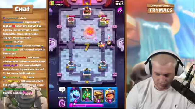 03:02:56Es wird festgestellt, dass es einen harten Meter-Switch gibt und sich erst über die nächsten Tage und Wochen ein neuer Meter bilden wird. Holz oder Inferno Dragon werden als Karten zur Auswahl angeboten, wobei Inferno Dragon bevorzugt wird. Für eine Challenge wird der X-Bogen gewählt, um Masteries zu farmen, was in der doppelten und dreifachen Elixierphase durch defensives Spiel mit Pumpen, Teslas und Kanonen erreicht werden soll. Elite Joker werden entdeckt und die Möglichkeit, die Hütte auf Level 14 zu bringen, wird hervorgehoben. Es wird überlegt, welche Karten im Deck bleiben und welche ausgetauscht werden sollen, da die Berserkerin generft wurde. Der Streamer startet eine Grand Challenge und überlegt, das Deck fast so zu spielen wie bisher, aber mit zwei Änderungen: Eisgeist statt Berserkerin und Mighty Miner statt Valkyrie. Die Valkyrie wäre wahrscheinlich auch ohne Nerf nicht mehr so stark, da die Meta sehr in favor von ihr war.