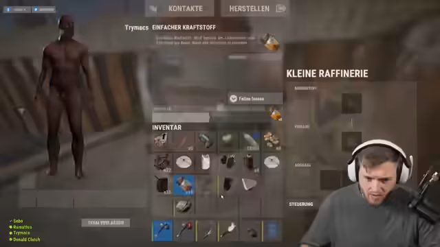 06:33:34Nachdem Trymacs mehrfach getötet wurde, plant die Gruppe, Ressourcen zu sammeln und sich neu auszurüsten. Trymacs stirbt durch einen Bären. Er erfährt, dass man Bären mit Schreien verschrecken kann. Die Gruppe diskutiert, ob sie erneut die Oil Rig angreifen sollen, ist aber aufgrund der starken Bewaffnung der Gegner und ihrer eigenen mangelnden Fähigkeiten skeptisch. Trymacs möchte lieber scrappen gehen und den Baum durchkaufen. Die Gruppe beschließt, sich auf die Beschaffung von Ressourcen und die Verbesserung ihrer Ausrüstung zu konzentrieren. Sie planen, gemeinsam loszuziehen und verschiedene Gebiete zu erkunden. Trymacs kritisiert Nuriax dafür, dass er zu leise ist. Die Gruppe diskutiert über die Vor- und Nachteile verschiedener Waffen und Ausrüstungsgegenstände. Sie planen, die Blue und Red Keycard zu besorgen und erneut die Oil Rig anzugreifen.