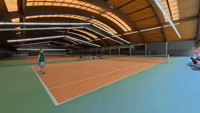 00:28:53Nach dem ersten Spiel wird ein neuer, spontaner Turniermodus ins Leben gerufen. Ein sogenannter 'Rundlauf' startet, bei dem jeder Spieler drei Leben hat. Jeder siebte Ball muss von einer festen Position aus gespielt werden, während sich alle anderen Spieler frei bewegen müssen. Ziel ist, Spieler durch gezielte Schläge auszuschalten. Der Modus sorgt für chaotische und dynamische Szenen, bei denen Schnelligkeit und Taktik im Vordergrund stehen. Feister ist einer der ersten, der ausgeschieden wird.