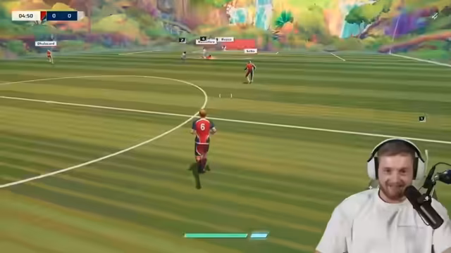04:04:17Ein erfolgreiches Offensivmuster wird perfektioniert: Ein Mitspieler stürmt an der Außenlinie ein, ein anderer positioniert sich zentral, um den Ball anzunehmen und zu einem dritten Spieler im Tor zu spielen. Durch diese gut synchronisierte Aktion und einen exzellenten Traumpass gelingt ein Tor. Der Streamer ist von der koordinierten Teamleistung begeistert.