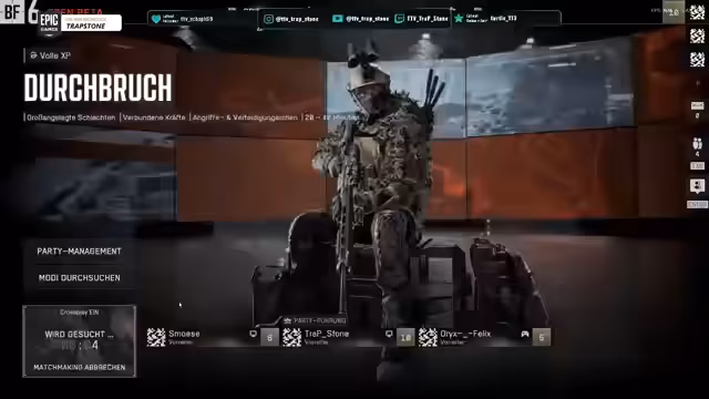 01:49:47Zu Beginn des Streams entscheidet sich der Streamer für den Eroberungsmodus ohne Waffenbegrenzung, um ein reineres Gameplay-Erlebnis zu haben. Er ist positiv überrascht von der schnellen Level-Progression und zeigt sich so begeistert von der Beta, dass er bereits eine Vorbestellung in Betracht zieht, einschließlich der 100-Euro-Variante. Während des Spiels hält er zunächst eine Stellung und ist von der Spielmechanik und dem Gameplay bereits jetzt sehr angetan.