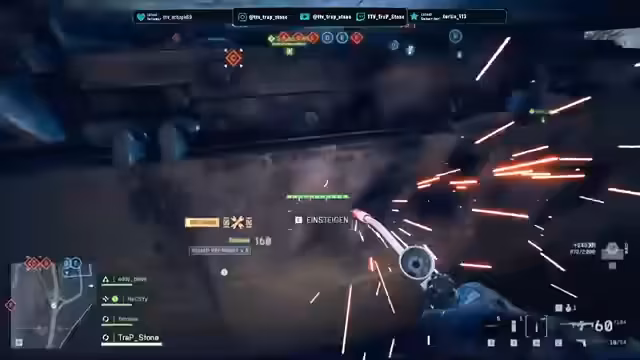 12:30:56Während des Spiels treten technische Schwierigkeiten auf, so kann der Streamer seinen Mitspieler Smösel nicht aus dem Panzer entfernen. Ein zufälliger Spieler jointet die Session, was zu weiteren Verwirrungen führt. Die Teamkommunikation ist angespannt und führt zu Missverständnissen, wer welche Rolle übernimmt und wer den Panzer steuern soll.