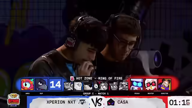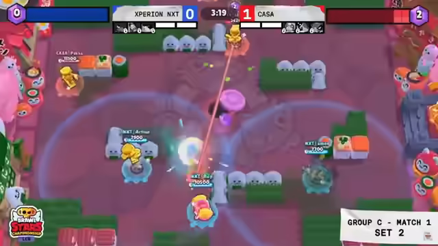02:01:34Die Gems von Kasa liegen auf dem Boden, aber NXT kann sie nicht holen. Kidd sammelt 16 Gems ein und sichert den Sieg für Kasa. Kasa spielt frecher und Arthur erhält wenig Unterstützung. Pekka sichert sich die Lane für Kasa. Experion NXT gleicht zum 1:1 aus, was in der Halle nicht gut ankommt. Kasa hat den Crowd-Buff und Stage-Buff. Sunny Soccer wird als nächste Map ausgewählt, auf der südamerikanische Teams historisch gefährlich waren. Cordelius ist einer der meistgebunten Brawler. Willow wird als starker Brawler genannt. Larry und Laurie sowie Otis werden ebenfalls gepickt. Hunde und Katzen sind gebannt. Experian NXT wählt Moe als Last Pick und eine High-Damage, Low-HP-Kombo. Kasa geht schnell mit 1:0 in Führung. Arthur gleicht mit einem wichtigen Tor aus. Das Juju-Cosplay wird gelobt. Kasa könnte den Sack zumachen, aber Experion NXT hält dagegen. Mo macht viel Druck und gleicht zum 1:1 aus. Die Teams liefern sich einen Schlagabtausch auf Augenhöhe.