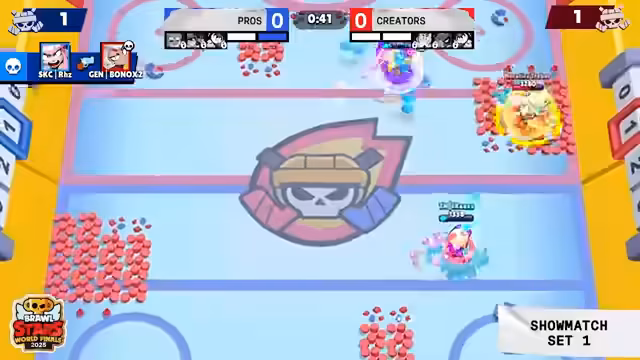 00:12:09Die Pick-and-Ban-Phase des Showmatches beginnt, wobei Meeple als erster Brawler von beiden Seiten gebannt wird – ein Indiz für seine Stärke. Bell wird als First-Pick für das Creator-Team gewählt, gefolgt von B und Melody für die Pros. Das erste Match findet im Modus Brawl Hockey auf der Map Slippery Slap statt. Die Kommentatoren spekulieren, ob Brawl Hockey in Zukunft Teil der E-Sport-Rotation werden könnte, halten es aber für unwahrscheinlich, da es zu nah an Brawl Ball ist und zu oft unentschieden ausgehen kann. Trotzdem zeigen die Creator und Pros ein hohes Niveau, wobei die Creator sogar eine Führung erzielen können. Das Spiel ist äußerst spannend und geht in die Overtime, was die enge Leistungsdichte beider Teams unterstreicht. Die Kommentatoren bemerken, dass die Pros möglicherweise nicht ihr volles Potenzial zeigen, um die Creator zappeln zu lassen. Die Halle füllt sich zunehmend, und die Vorfreude auf die kommenden offiziellen Matches, insbesondere SK gegen Novo, ist spürbar. Es wird betont, dass es um 1 Million Dollar Preisgeld, einen möglichen neuen Skin und die begehrte Trophäe geht.