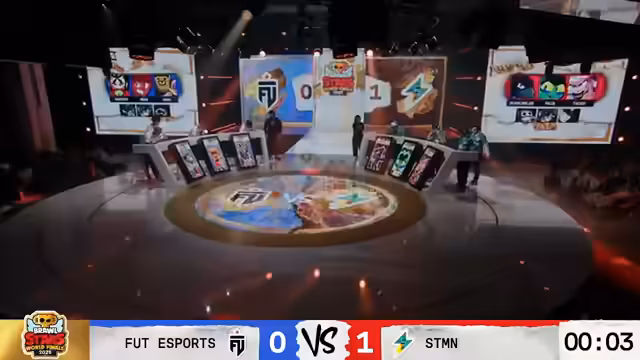 04:00:14Das Match auf Kaboom Canyon beginnt mit der Überraschungsgast Sunny, die sich zu den Kommentatoren gesellt. Das Spiel startet intensiv, wobei Miu und Naui schnell Schaden am gegnerischen Safe verursachen. Gero bricht eine Bubble, was taktisch wichtig ist. Trotz guter Mid-Kontrolle von Juan Carlos gerät STMN ins Hintertreffen. Ein Fehler, bei dem die Ult den Safe nicht berührt, kostet STMN wertvolle Zeit, obwohl sie in Führung liegen. FUT eSports zeigt eine starke Leistung mit Hypercharge und holt sich die Mitte. Naui überlebt geschickt und verursacht weiteren Safe-Schaden, sodass FUT das erste Game auf dieser Karte mit 1:0 gewinnt. Die Fans von FUT eSports, die World Finals Gewinner von 2023, zeigen ihre Begeisterung. STMN, das Überraschungsteam, beweist weiterhin seine Stärke und den Willen, im Turnier zu bleiben. Beide Teams kämpfen um das direkte Ticket für den nächsten Tag, haben aber noch eine zweite Chance im Lower Bracket.