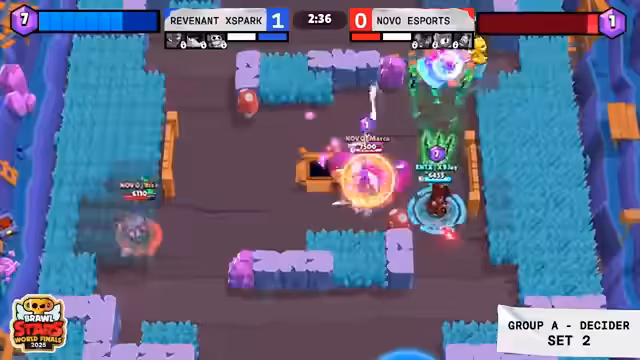 04:47:21Novo eSports baute eine solide Führung mit sechs gesammelten Gems auf, wobei Marco seinen Hypercharge einsetzte. Trotzdem gelang es Revenant Spark, die Kontrolle zu behalten. Die Hypercharges von Marco und Biso konnten die Dominanz von Revenant nicht brechen. In einem kritischen Moment versuchte Subim, Response zu kontrollieren, scheiterte jedoch. X9J sprang heraus, und Sergeant räumte auf, was zum Ausgleich von 1:1 führte. Das Spiel blieb extrem spannend, da Revenant die Möglichkeit hatte, das Blatt zu wenden. Marco versuchte, die Gems zu sichern, während Response und Sarge Druck auf die Gegner ausübten. Trotz eines starken Einsatzes von Ash und dessen Hypercharge, der viele Mäuse hervorbrachte, gelang es Revenant, den Countdown zu stoppen und das Spiel zu verlängern. Am Ende sicherte sich Revenant X-Spark das Set, was den Zwischenstand auf 1:1 setzte.
