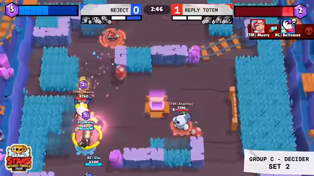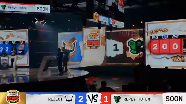 06:28:56Auf der Brawl Ball-Map Superbeach zeigt Reject eine starke Performance und sichert sich die Führung gegen Reply Totem. Mit einer soliden Strategie und dem Einsatz von Brawlers wie Shade und Oli gelingt es Reject, das erste Tor zu erzielen. Trotz der Bemühungen von Totem, insbesondere durch Melty, der als „Manuel Neuer unter den Brawl Ball-Spielern“ bezeichnet wird, kann Reject den Druck aufrechterhalten. Die Oli-Ulti erweist sich als besonders nervig und vereitelt viele Pläne von Totem. Reject baut langsam seinen Druck auf und kann durch einen weiteren Treffer die Führung ausbauen. Die Halle ist am Toben, als Totem versucht, das Spiel zu retten, aber Reject macht es ihnen sehr schwer. Die Kommentatoren befürchten, dass sich ein weiteres EMEA-Team aus dem Turnier verabschieden muss, wenn Reject so dominant weiterspielt. Der Shade-Pick von Melty wird als unfassbar stark auf dieser Map hervorgehoben.