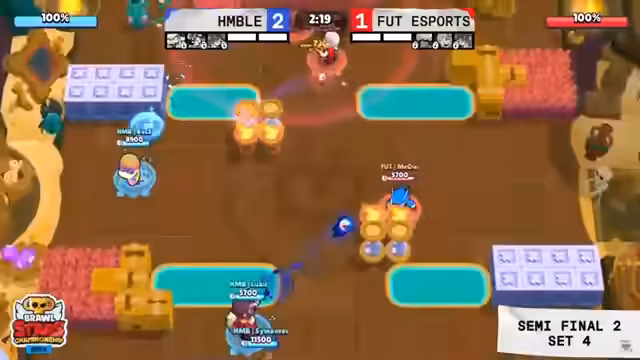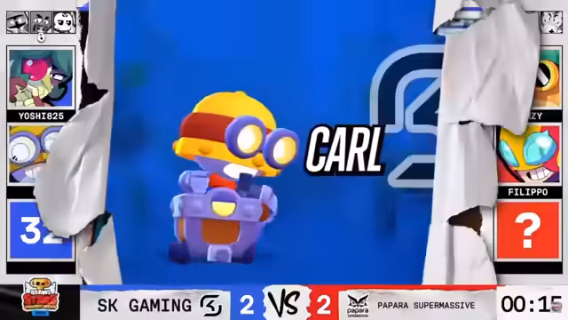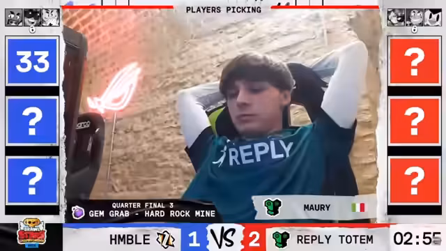 02:41:14Das Match beginnt mit Teams, die wichtige Punkte sammeln wollen. Hank wird wieder als Brawler gewählt, was für Aufsehen sorgt. Buzz hat seinen ersten Auftritt und wird als sehr starker Brawler angesehen, als Gegenpick wird Shelley gewählt. Das Spiel ist extrem knapp und geht mit 1:2 an Humble. Beide Teams zeigen starke Performance, besonders Luki mit seinem Double-Kill.