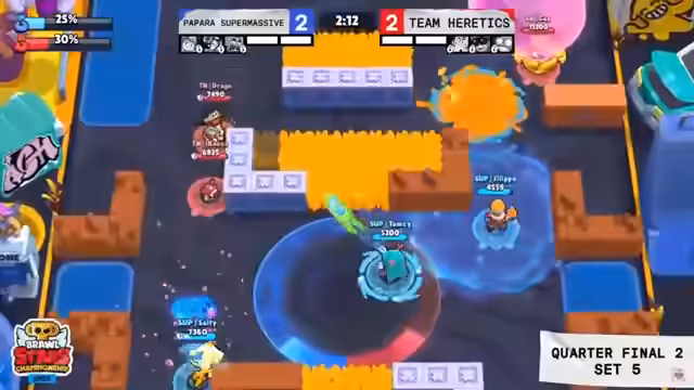 04:18:34Das dritte Match im Halbfinale bot intensive Kämpfe und taktische Raffinesse. Beide Teams zeigten starke Leistungen und setzten verschiedene Brawler wie Gray, Yoshi und Hypercharge effektiv ein. Es kam zu wilden Schlagabtausch und dramatischen Momenten, bei denen das Spiel mehrfach die Richtung wechselte. Die Kommentatoren waren beeindruckt von der Qualität der Spiele und hoben die besonderen Fähigkeiten der Spieler hervor. SK Gaming konnte letztendlich mit 2 zu 1 in Führung gehen und war damit dem Finale einen Schritt näher.