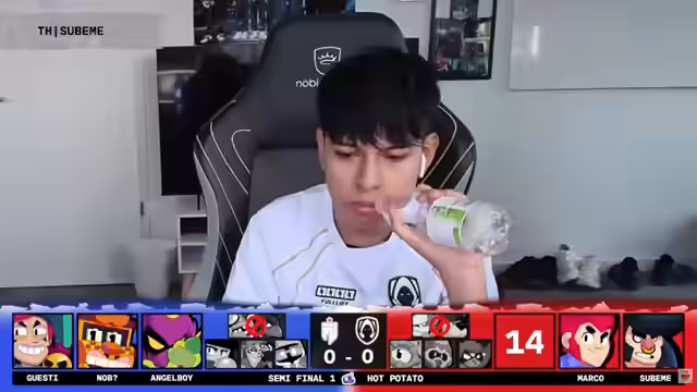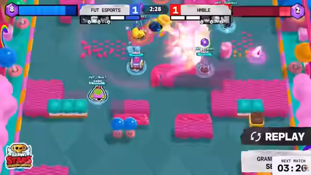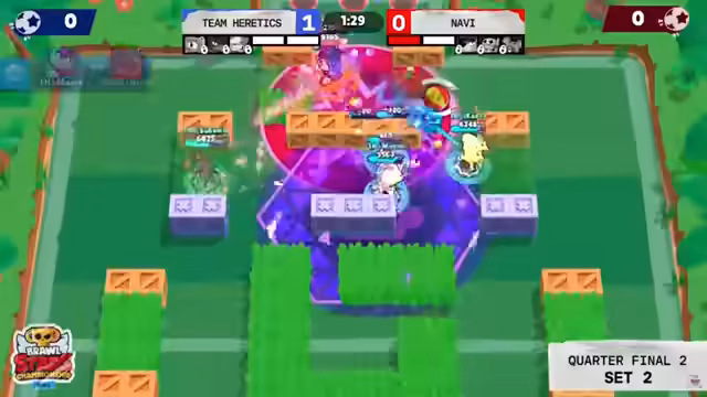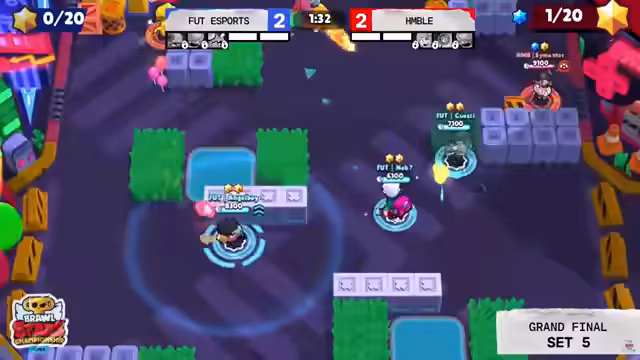 05:05:24Das große Finale beginnt mit dem ersten Spiel auf der Brawl Ball Map. Foot Esports und Team Humlie liefern sich ein schnelles und intensives Duell. Foot geht früh in Führung, doch Humble kontert durch herausragende Teamarbeit und eine aggressive Taktik. Team Humble gewinnt das erste Set mit 1:0 und geht somit in Führung.