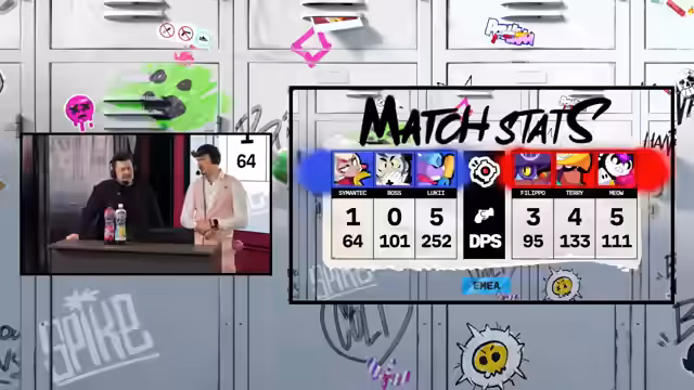 01:05:42Nach dem dramatischen Ende des Matches findet eine interaktive Pause mit dem Publikum statt. Die Moderatoren führen eine Quizfrage durch, bei der die Zuschauer die Brawler der letzten Saison mit dem Brawl Pass-Skin erraten müssen. Nach einer kniffligen ersten Frage, bei der die Antwort Rico und Angelo lautet, wird ein zweites, von Tobi vorbereitetes Quiz veranstaltet. Dabei wird ein Skin-Verlosung per QR-Code durchgeführt, bei dem die Geschwindigkeit der Teilnehmer im Stream und vor Ort getestet wird. Das Publikum agiert hier sehr schnell und schlau, was die Moderatoren zu schätzen wissen.