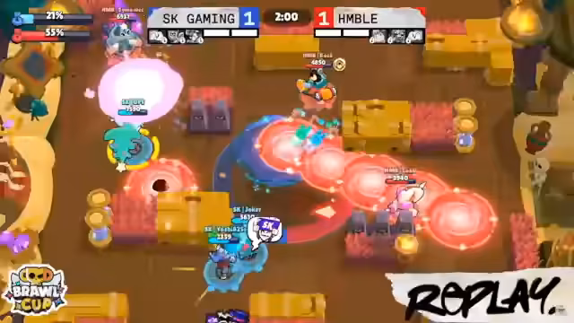 04:03:33Die final Map ist Knockout. Humble hat hier den Matchpoint und kann das Finale mit einem weiteren Sieg für sich entscheiden. Beide Teams zeigen starke Drafts ohne problematische Brawler wie Hank. Die Kämpfe sind intensiv und von aggressiven Manövern geprägt. Humble gelingt es, eine Runde für sich zu entscheiden und führt mit 1:0. SK Gaming muss nun zurückkämpfen, um das Match zu prolongieren und eine fünfte Map zu erzwingen. Die Spannung ist extrem hoch.
