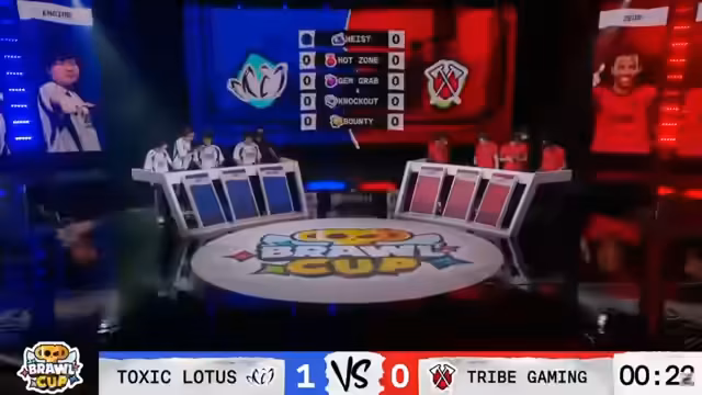02:43:07Im dritten und möglicherweise letzten Modus Hotzone gelingt es Tribe mit einem beeindruckenden Draft mit Brawlern wie Lou, Draco und Barley, die Führung zu übernehmen. Trotz starker Gegenwehr von Loud durch Spieler wie Stu und Kaidok, kann Tribe das Match mit 3:2 für sich entscheiden und sich als Favorit des Turniers etablieren.