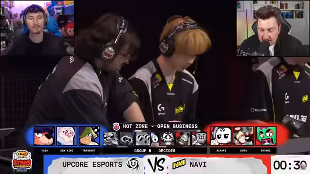 04:46:55Navi setzt sich im ersten Satz mit 1:0 gegen Upcore E-Sports durch. Das Spiel wurde als absoluter Schlagabtausch auf Augenhöhe beschrieben, wobei Navi am Ende die Oberhand behielt. Die Erfahrung von Ashapi und der starke Einsatz von Kit als Brawler waren entscheidend. Die Kommentatoren bewerten den Draft von Navi als "S-Tier Bingo" und als deutlich besser als den von Upcore.