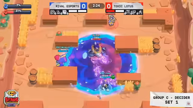 05:40:23Das Brawl Ball Match zwischen den beiden Teams gestaltet sich als extrem umkämpft. Trotz eines frühen Tores von Rival eSports kämpft sich Toxic Lotus zurück und zwingt das Spiel in die Overtime. Die nervliche Spannung ist spürbar, da ein Sieg in diesem Set den Teams einen entscheidenden Vorteil im Best-of-Five verschaffen würde. Das Teamplay und die individuellen Aktionen, insbesondere von Terry von Rival, sind prägend für den Verlauf.