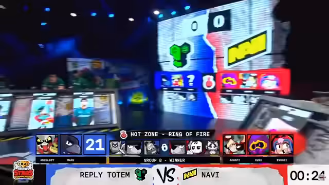 01:48:55Totem nutzt frühzeitig den Hypercharge von Achapi und eliminiert sofort einen Gegner. Das Spiel entwickelt sich schnell zugunsten von Totem, das eine massive Führung von 18 zu 6 Stars aufbaut und das Match vorzeitig mit 20:0 beendet. Totem qualifiziert sich damit für den Sonntag und hat nun ein Matchball. Navi hingegen verliert ihr Bonusleben und ist ins Lower Bracket gerutscht, wo sie heute noch antreten wird.