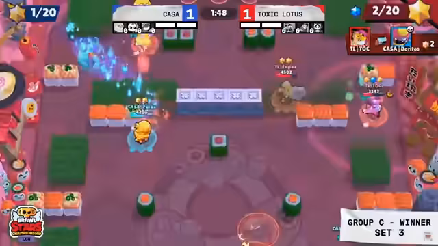 02:42:49Das Match zwischen Toxic Lotus und Kasa beginnt mit einer spannenden Analyse der Brawler-Wahl. Der Kommentator äußert sich skeptisch zur Wahl von Engine, da sie zwar Assassine-Potenzial hat, aber im Druck vorne fehlt. Toxic Lotus zeigt jedoch eine starke Kombo. Nach anfänglicher Führung von Kasa schafft Toxic Lotus den Ausgleich und übernimmt die Führung. Kasa kämpft, um die Situation zu entschärfen, wird aber zurückgedrängt. Toxic Lotus nutzt den Druck, um Kasa in eine Verteidigungsposition zu zwingen und die Führung auszubauen.